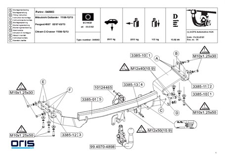Avrupa standartlarına uygun CE belgeli Citroen C-Crosser orjinal aksesuar çeki demiri.